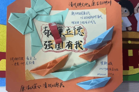 为热烈庆祝中华人民共和国成立74周年,深入推进红色基因传承,激发广大青少年爱党爱国爱社会主义的热情,在国庆节前,厂长资源 举行2023-2024学年第一学期团课,以青春之名,立青春之志,以下是部分共青团员通过手工作品表达对祖国的热爱。