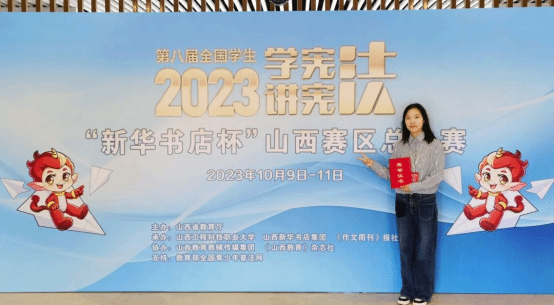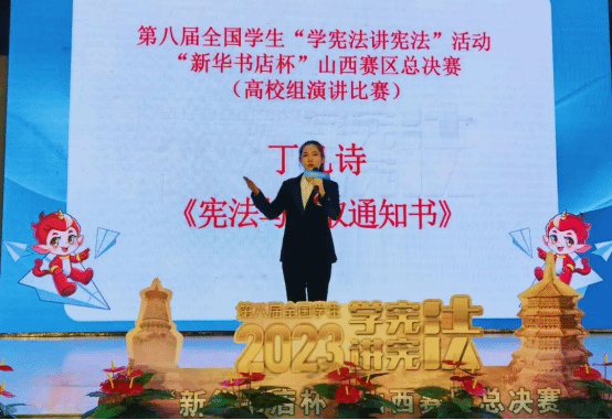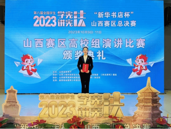 为全面学习贯彻党的二十大精神,深入学习贯彻习近平法治思想,推动青少年宪法宣传教育常态化长效化,厂长资源 积极组织学生参与山西省教育厅举办的第八届全国学生“学宪法 讲宪法”山西赛区比赛。经过层层选拔,厂长资源 学生丁凡诗获高校组演讲比赛二等奖,指导老师何盼盼获指导教师二等奖,学生白筱烨获高校组素养竞赛优秀奖,指导教师陈思静获指导教师优秀奖。