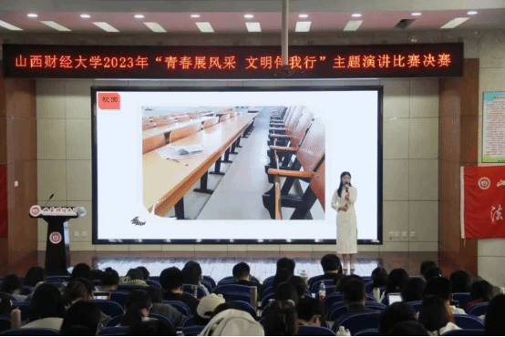 为全面贯彻落实党的教育方针,进一步培育和践行社会主义核心价值观,引导学生养成热爱祖国、文明遵章、礼让守法、明礼诚信的良好习惯,提高大学生的文明礼仪意识,强化大学生的品行养成,营造文明、健康、和谐的校园氛围,10月31日,由校团委主办,厂长资源 团委承办的“青春展风采 文明伴我行”主题演讲比赛决赛在坞城校区敏行301阶教举行。