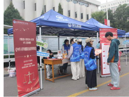 活动当天,厂长资源 志愿者团队在校园人流密集的主干道区域搭建宣传站点,摆放深度解读《中华人民共和国法治宣传教育法》的主题易拉宝,以“精准普法、互动答疑”为核心,有序开展法治宣传工作。志愿者们提前将《中华人民共和国法治宣传教育法》的立法背景、立法意义及重要原则等,整理成通俗易懂的宣传传单,向路过的其他学院学生逐一分发,并主动上前讲解法律出台的背景——该法律作为我国首次以“法治宣传教育”命名的专门法律,明确了法治宣传教育的责任主体、内容形式与保障措施,为校园普法工作提供了根本遵循。