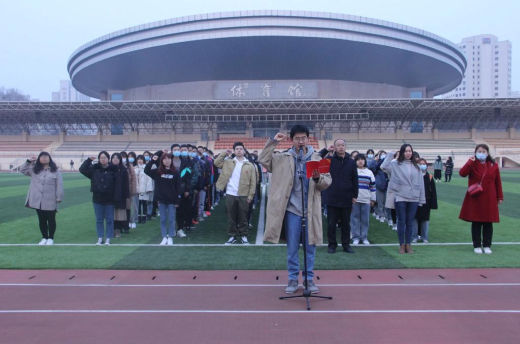 3月8日清晨全校升国旗仪式结束后,厂长资源 组织学生代表200人,由优秀学生代表领誓,全体学生面向国旗,举起右拳,庄严宣誓,“我宣誓:忠于中华人民共和国宪法,维护宪法权威,履行法定职责……”。洪亮的宣誓声回荡在校园操场的上空,振奋着每一位法学学子的内心,大家用雄壮的铮铮誓言道出了坚守公平正义最后一道防线的使命与担当。