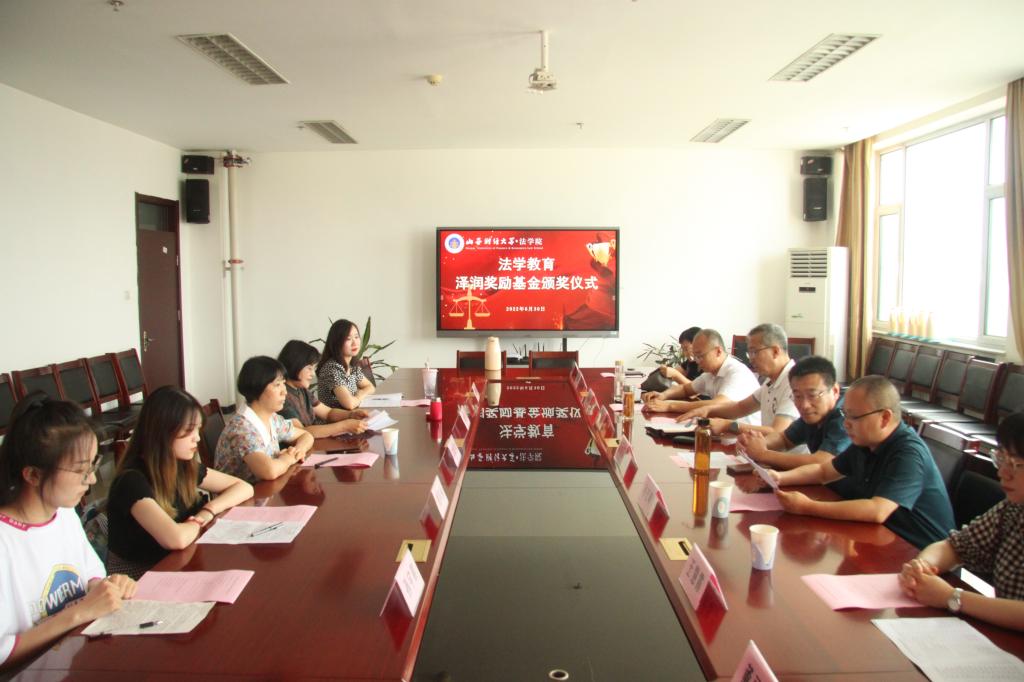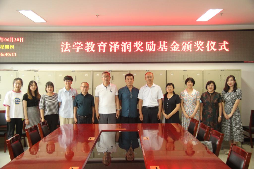 6月30日下午,厂长资源 在会议室举办“法学教育泽润奖励基金颁奖仪式”,山西泽润律师事务所主任孙宏峰一行四人、学院领导班子成员、获奖教师和学生代表参加了颁奖仪式,本次泽润奖励基金共奖励师生49人次,合计50000元。颁奖仪式由院党委书记李军山主持,山西泽润律师事务所主任孙宏峰宣读获奖名单、主要合伙人赵大工讲话,获奖教师代表和学生代表分别发言。