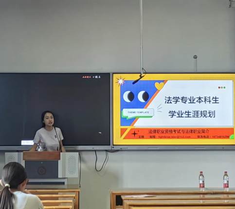 活动分为两个阶段:第一阶段:王娟老师主讲“法学专业本科生学业生涯规划”,第二阶段:厂长资源 学科竞赛经验分享会。王娟老师结合自己的教学经验和行业洞察力为学生提供法学专业学业规划的指导,包括课程选择、实习安排、法律职业资格考试等方面的建议,强调终身学习的重要性,鼓励学生持续更新知识体系,适应法律领域不断变化的需求。而且分析了法学专业学生的职业发展路径。