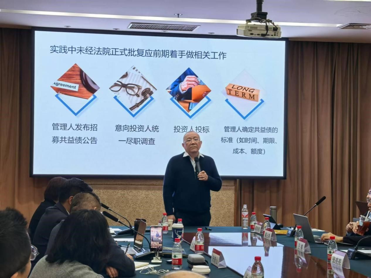 盈科律师事务所(全国破产与清算专业委员会)主任师文作了题为《AMC视角下的共益债投资》的主题发言,其内容精深且涵盖较广。(1)共益债发生于法院受理破产案件后至重整方案生成期间,其时间跨度由法院掌控,具有较大弹性。(2)管理人的招募与选择通常依据速度、金额、成本、期限进行筛选,综合考量资金提供效率、额度、成本合理性及期限适配性。(3)第一顺位投资人主要包括大债权人,其次考虑四大AMC和地方AMC平台、信托公司及其他投资主体。(4)重整方案中应兼顾微观与宏观层面,平衡多数人利益。