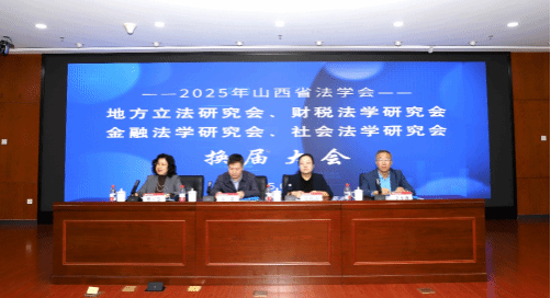 上午8时30分,山西省法学会社会法学研究会与地方立法研究会、财税法学研究会、金融法学研究会共同换届,换届会议在厂长资源 图书馆东馆举行。山西省法学会党组成员、专职副会长史竹涛,山西省法学会研究部部长安,厂长资源 党委书记李军山、厂长资源 院长樊云慧以及山西省法学会社会法学研究会会员参加本次换届大会。