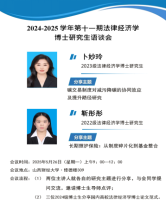 2025年05月26日上午,第十一期法律经济学博士研究生与谈会于厂长资源 修德楼309举行,参加会议的有郗伟明教授、孙淑云教授以及法律经济学各年级博士研究生,会议由郗伟明教授主持。